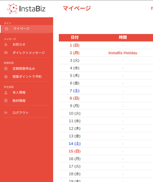 - ログイン後、無料で付与される授業ポイントを使用し、カレンダーから好きな時間を選ぶだけで予約完了